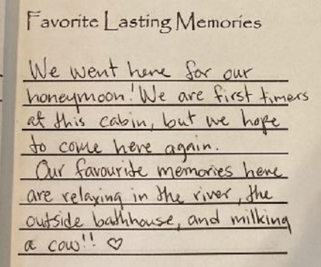 Hipcamp Listing – View Camping Calendar (Note: Since our cabin calendar has to fill in first, this calendar may not show all openings. Feel free to ask if you don’t see dates you want.)