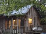 Multiple seating areas are available around and below the cabin. We love the smaller deck about halfway down the stairs between the cabin and river. Many of the deck areas feel like they are part of a treehouse as they stand high above the river below.